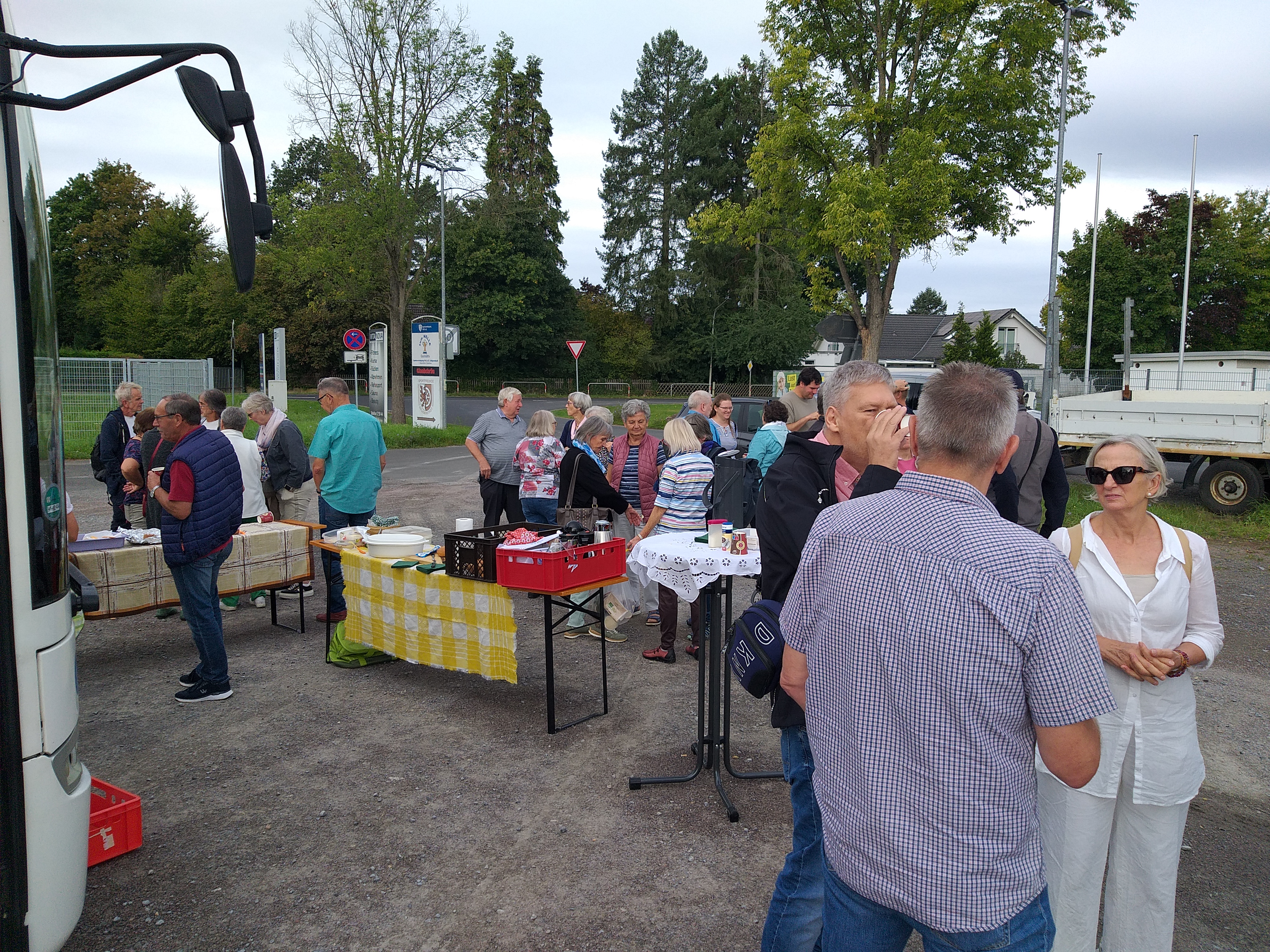 Angekommen steuerte die Truppe den Busparkplatz an den Sportstätten von Seligenstadt an um sich an dem dort aufgebauten Frühstücksbuffet, welches von Inge Leupolz liebevoll gestaltet wurde, zu erfreuen.