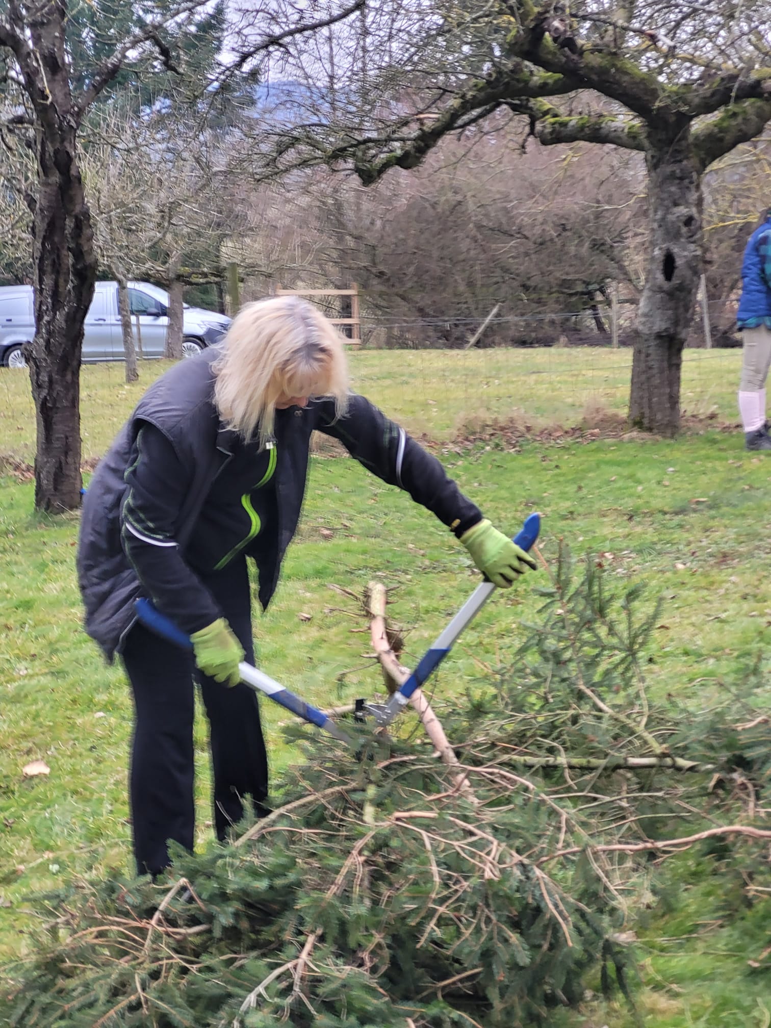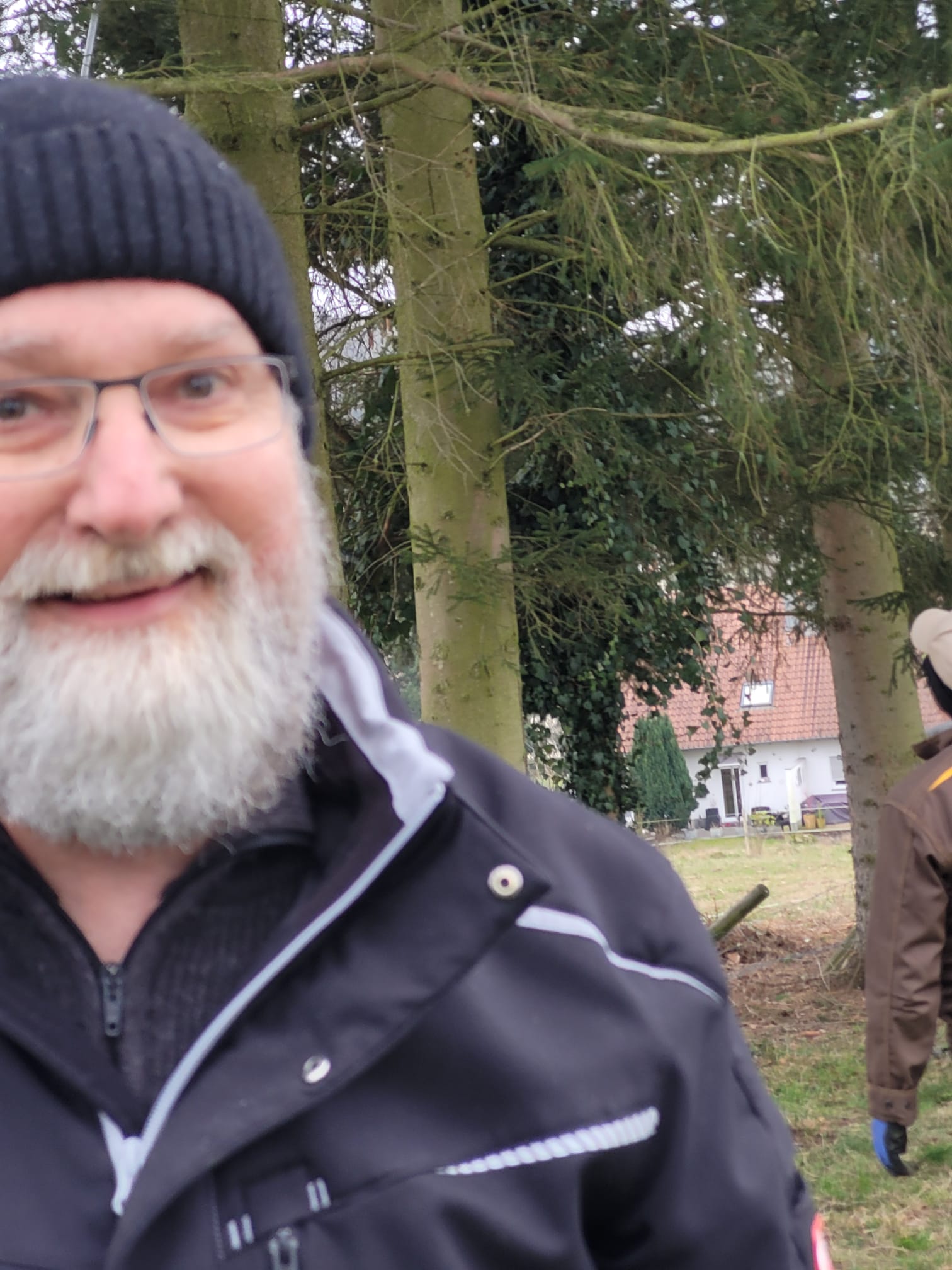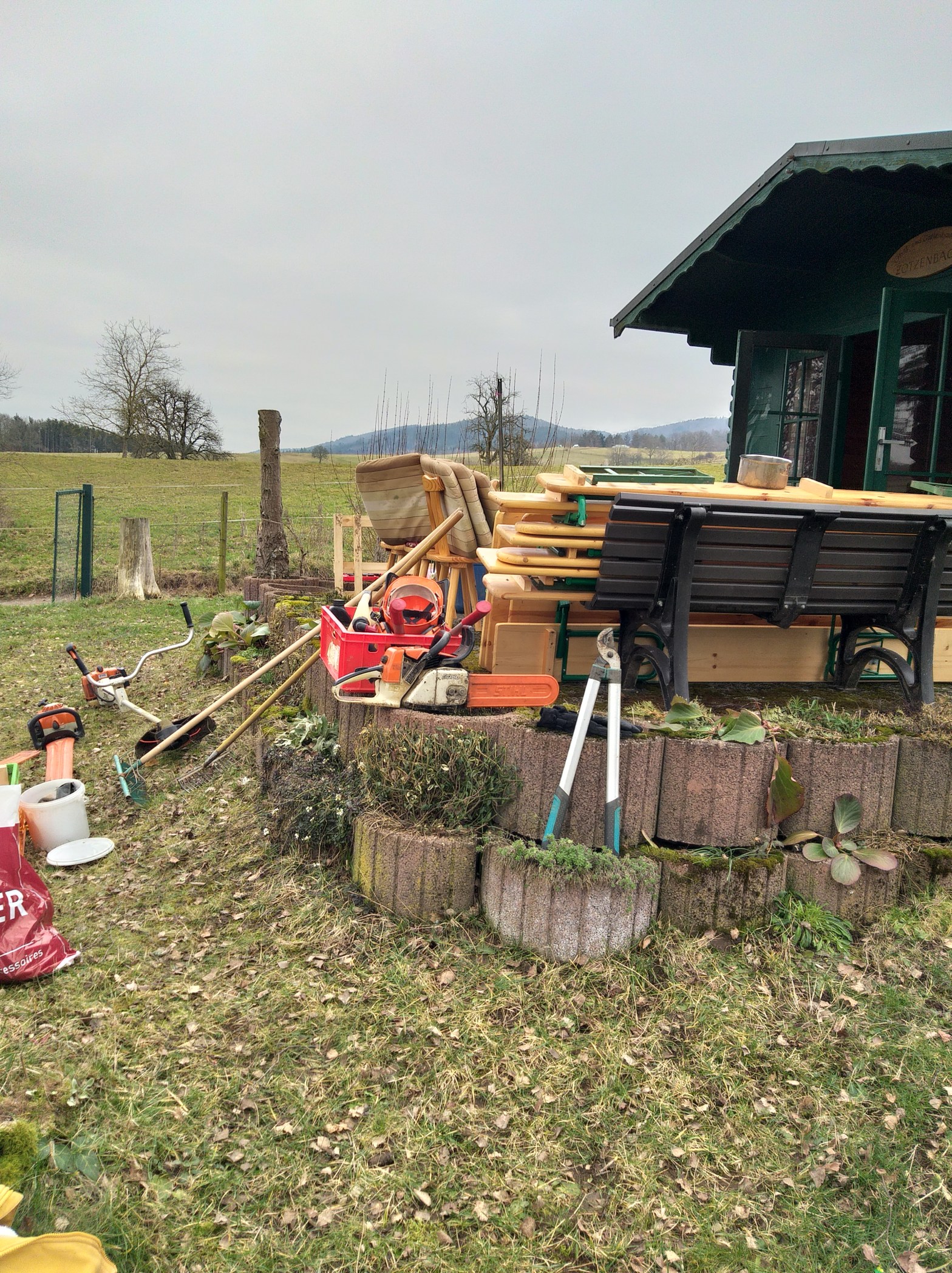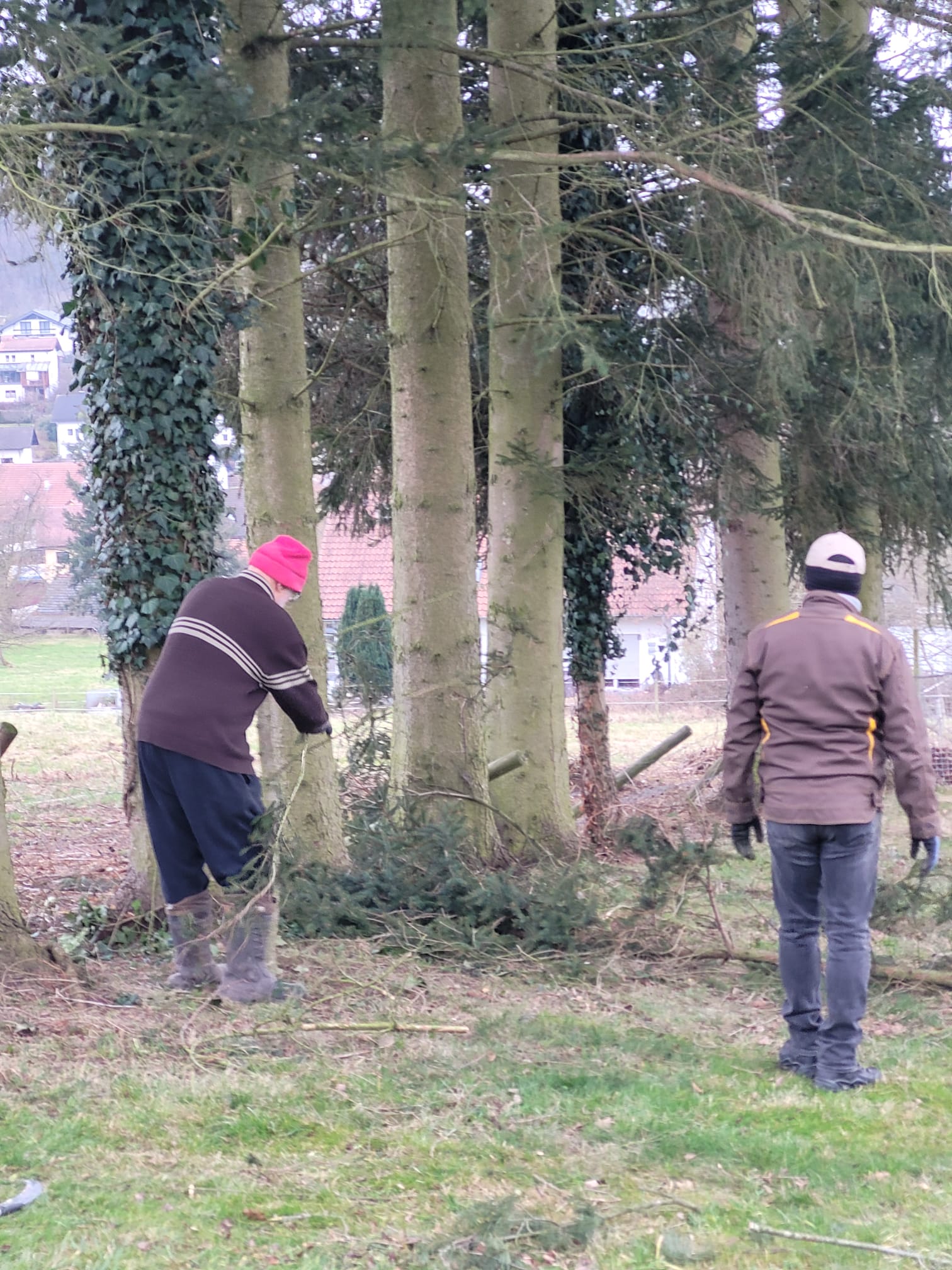 Am Samstag, 15.Februar morgens um 9.00 Uhr haben sich, bei frischen 2°C, 16 Personen auf dem Vereinsgelände eingefunden um das Grundstück auf den nahenden Frühling vorzubereiten. Ausgerüstet mit Schere, Harke, Rechen und Sägen ging es vereint zu Werke. Vier abgestorbene Altbäume wurden gefällt, damit im Herbst Platz für die Neupflanzungen geboten ist. Sie wurden mit ca. 1 m Stumpf gelassen um damit Insektenhotels zu bauen. Auch wurden rund um das Grundstück die Dornen entfert um dem Zaun wieder Raum zu verschaffen. Dieser wird in einer der nächsten Arbeitseinsätze erneuert um die Neupflanzungen vor Wildverbiss zu schützen. Die junge Generation hatte viel Freude am großen Feuerhaufen, der bei den morgendlichen Temperaturen für wohlige Wärme sorgte. – Nach getaner Arbeit gab es eine deftige Stärkung, die Inge Leupolz wie gewohnt mit Herzblut präsentierte. So fanden dann im Anschluss bei den vielen Leckereien noch viele interessante Gespräche statt und die tollen Ideen daraus werden bei den nächsten Treffen gerne umgesetzt.