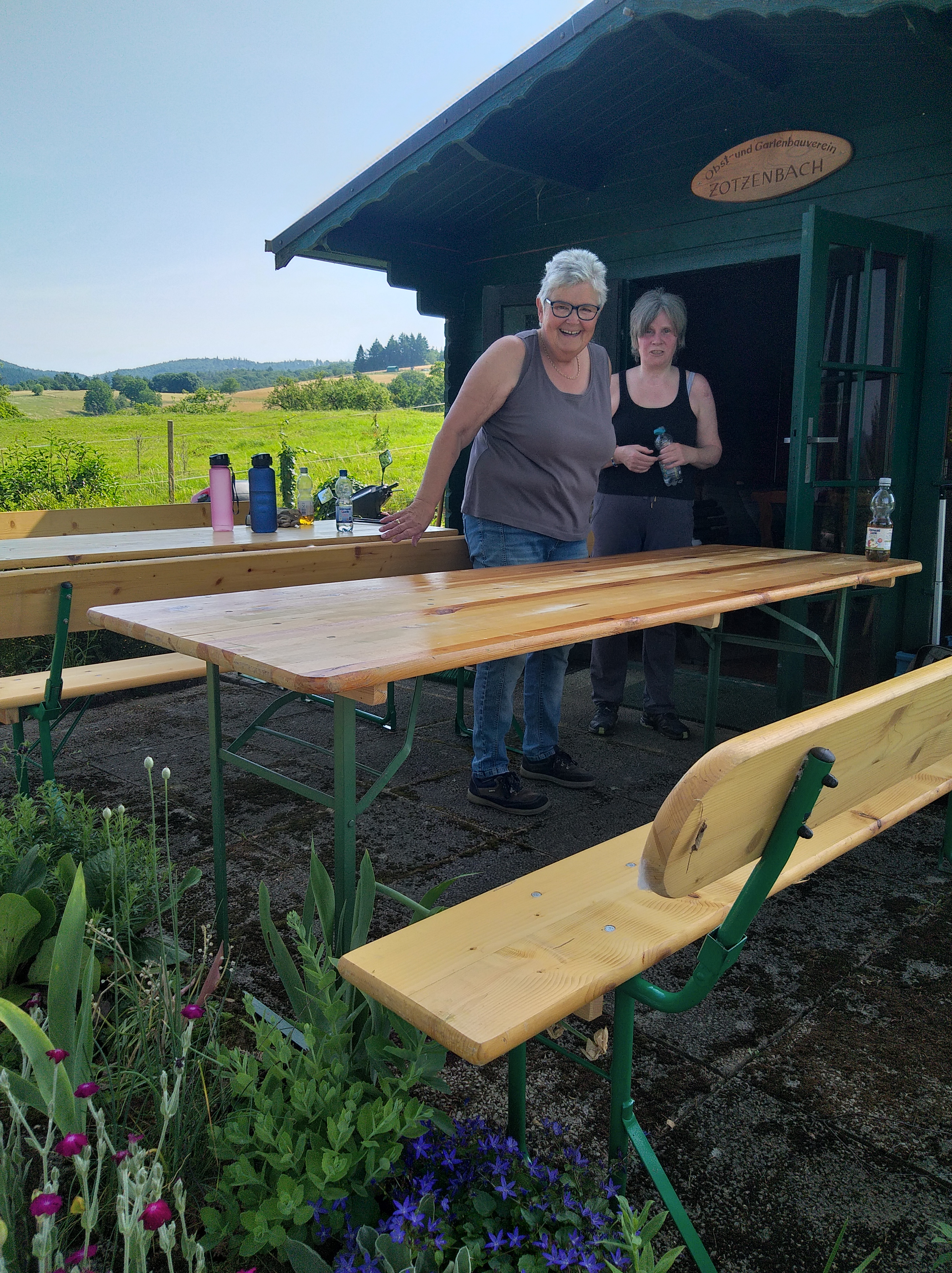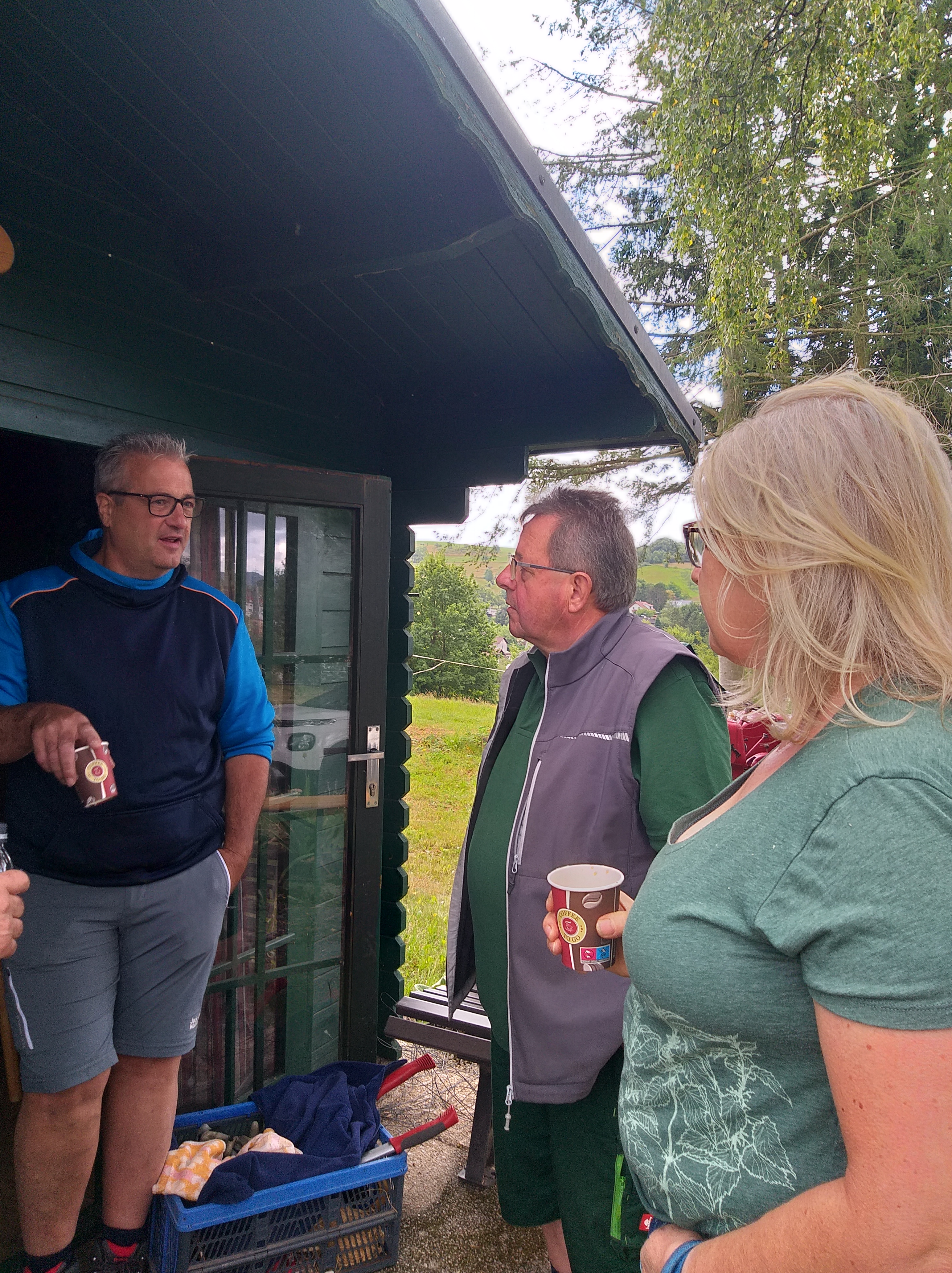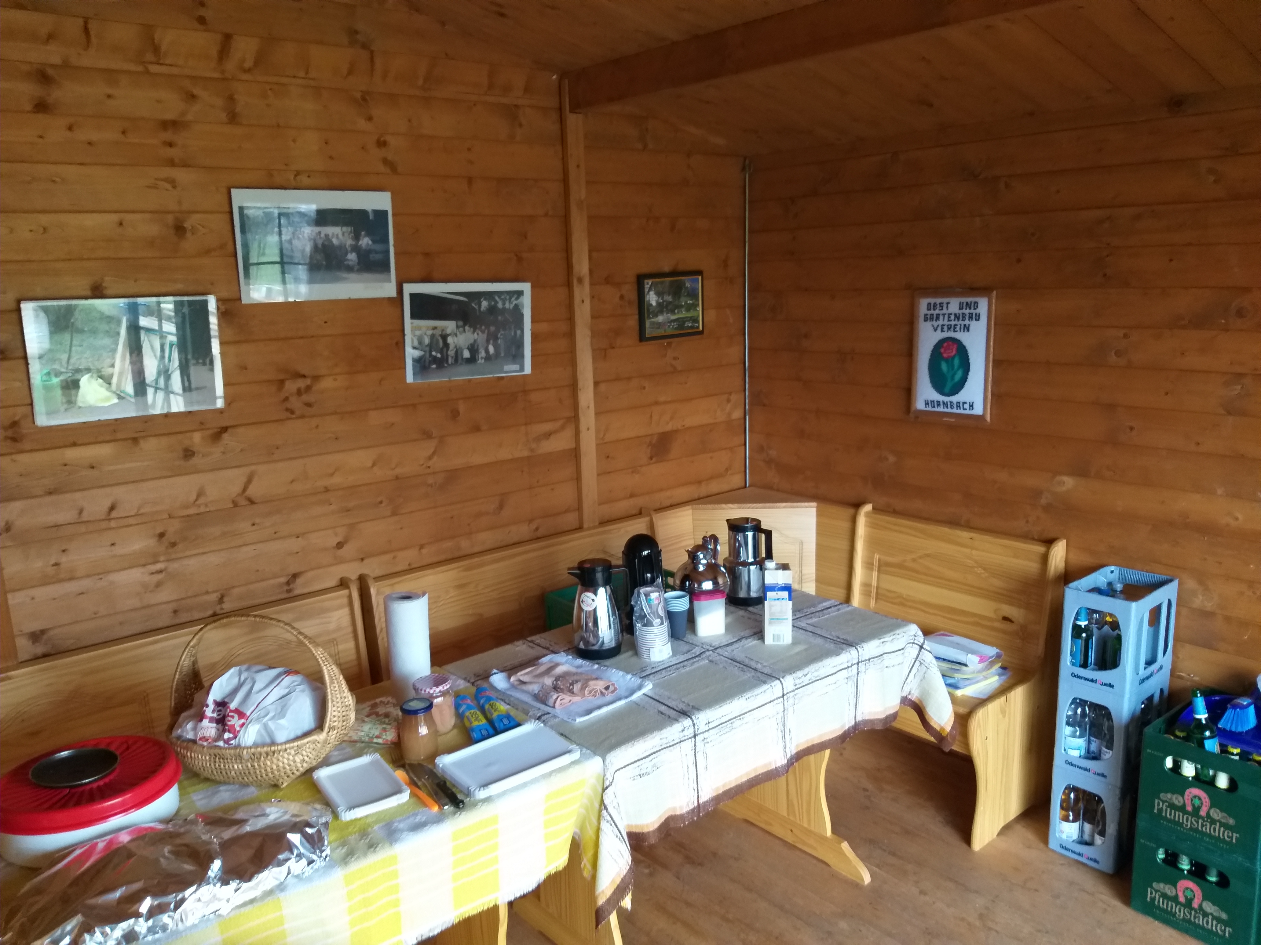 Nach getaner Arbeit begaben sich alle in und vor die Vereinshütte, wo die fleißigen Helferinnen einen kleinen Imbiss vorbereitet hatten.