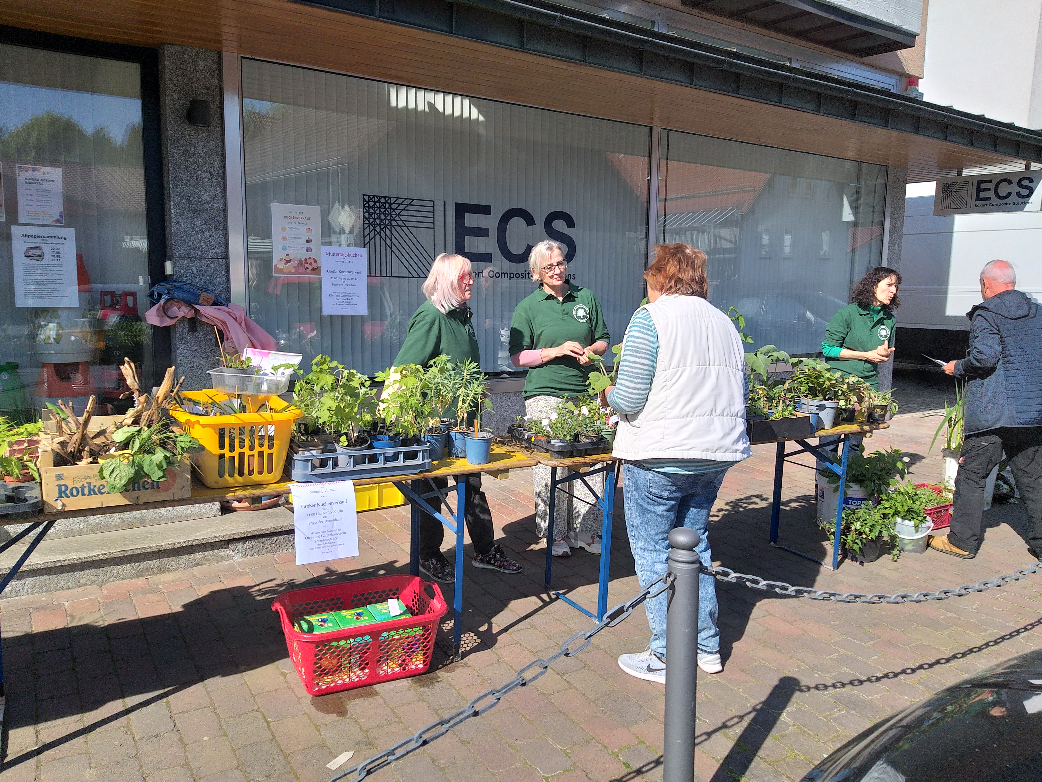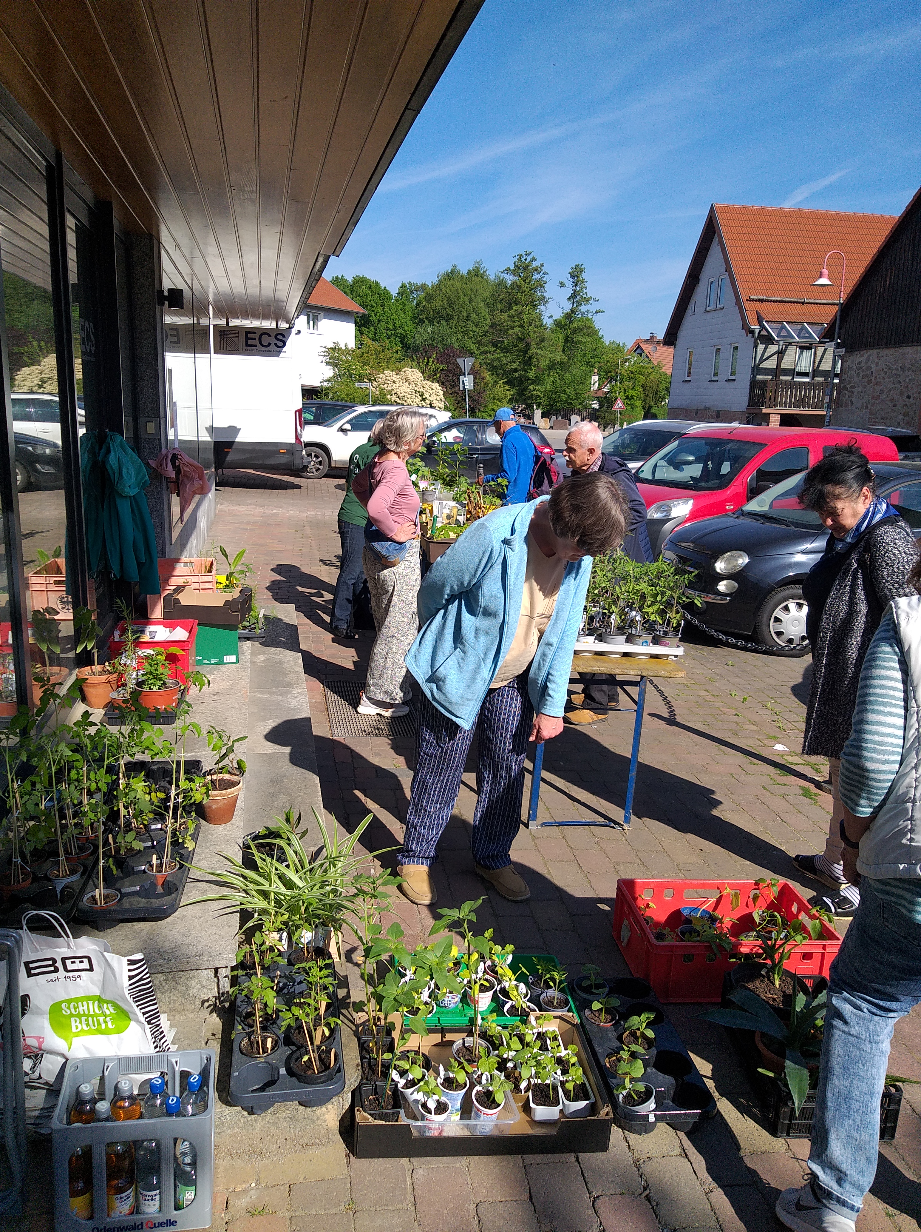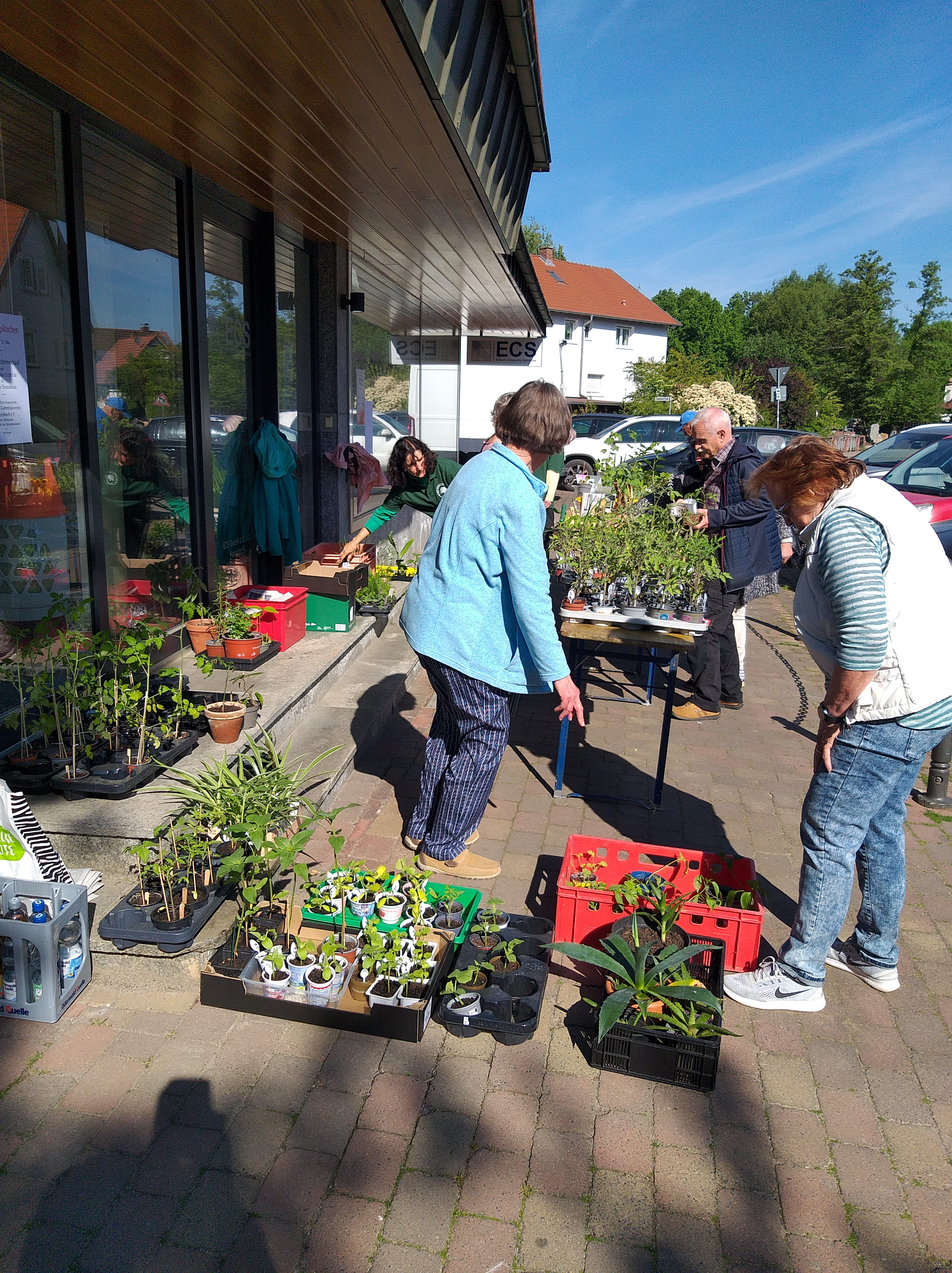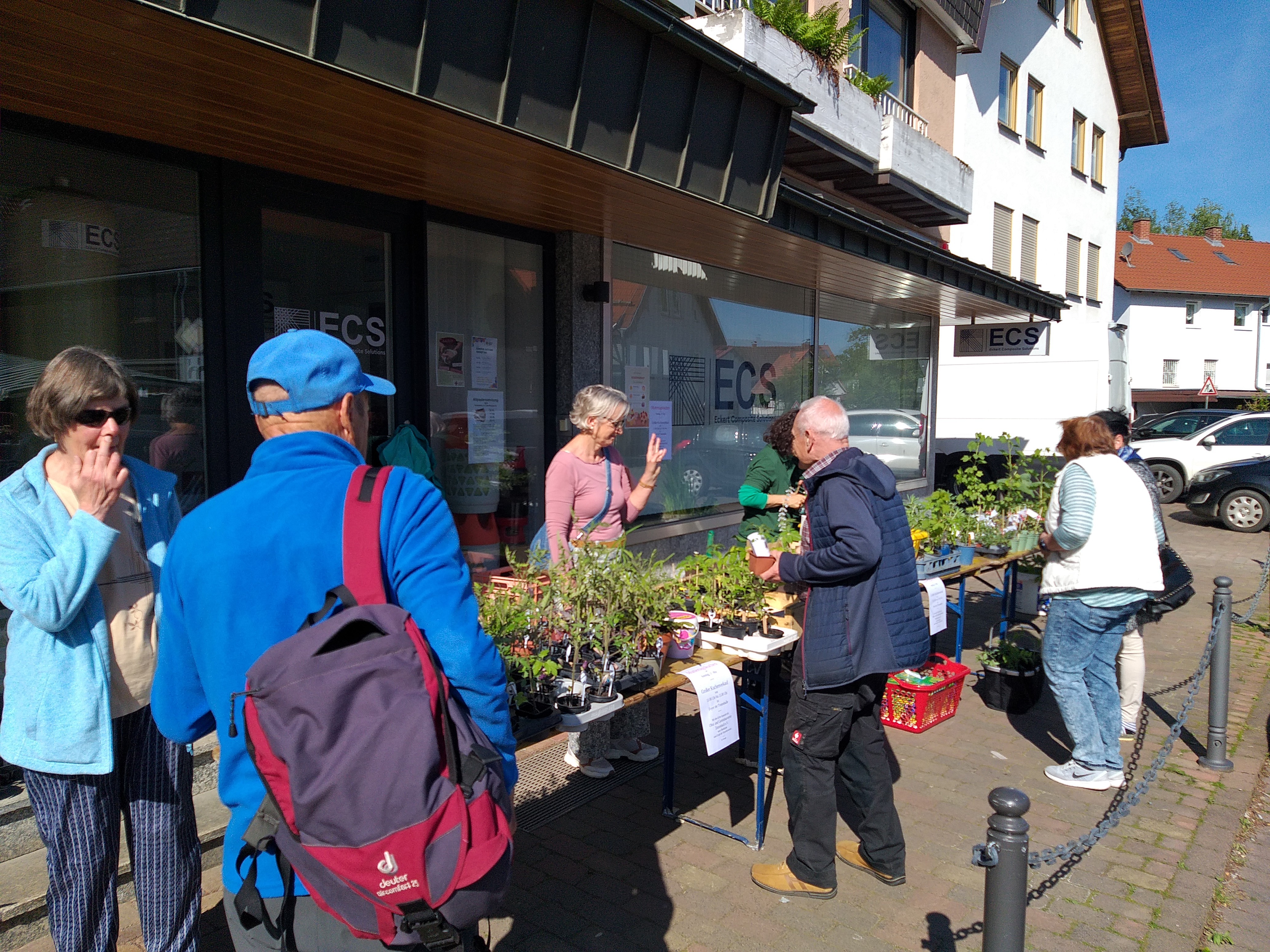 Toller Erfolg bei unserer diesjährigen Pflanzenbörse. Bei strahlendem Sonnenschein und morgentlichen frischen Temperaturen bot der Obst- und Gartenbauverein Zotzenbach von den Mitgliedern allerlei Selbstgezogenes an. Von Tomaten über Zucchini und Kürbispflanzen bis hin zu Erdbeeren und Kaki war alles vertreten, was der Garten so hergibt. Das Interesse war riesengroß und so fanden zahlreiche Jungpflanzen und auch Sämereien ein neues „Gewächshaus“. Den Anliegern sei an dieser Stelle gedankt, dass der OGV sich an diesem Tag vor den Einfahrten plazieren darf.