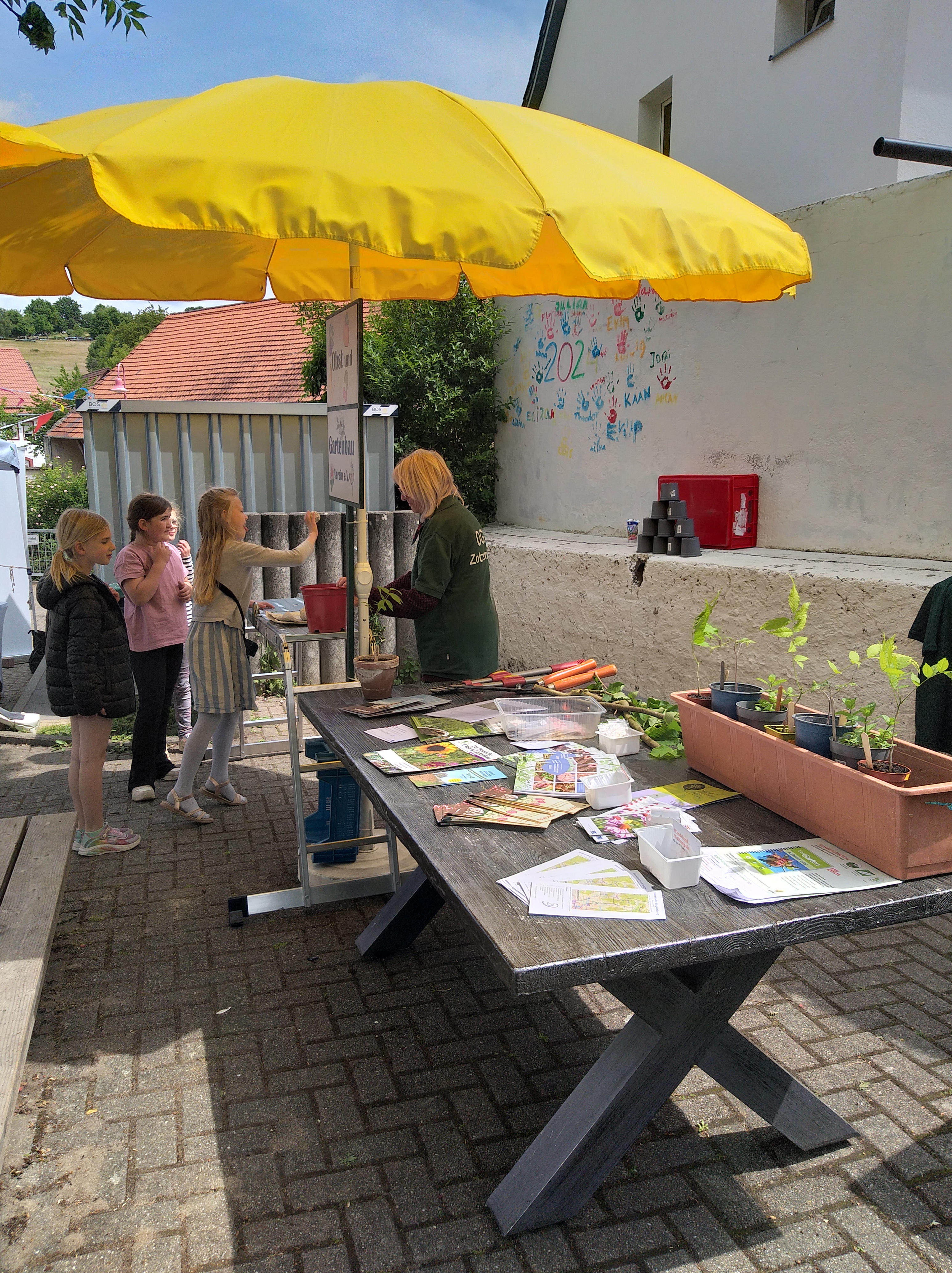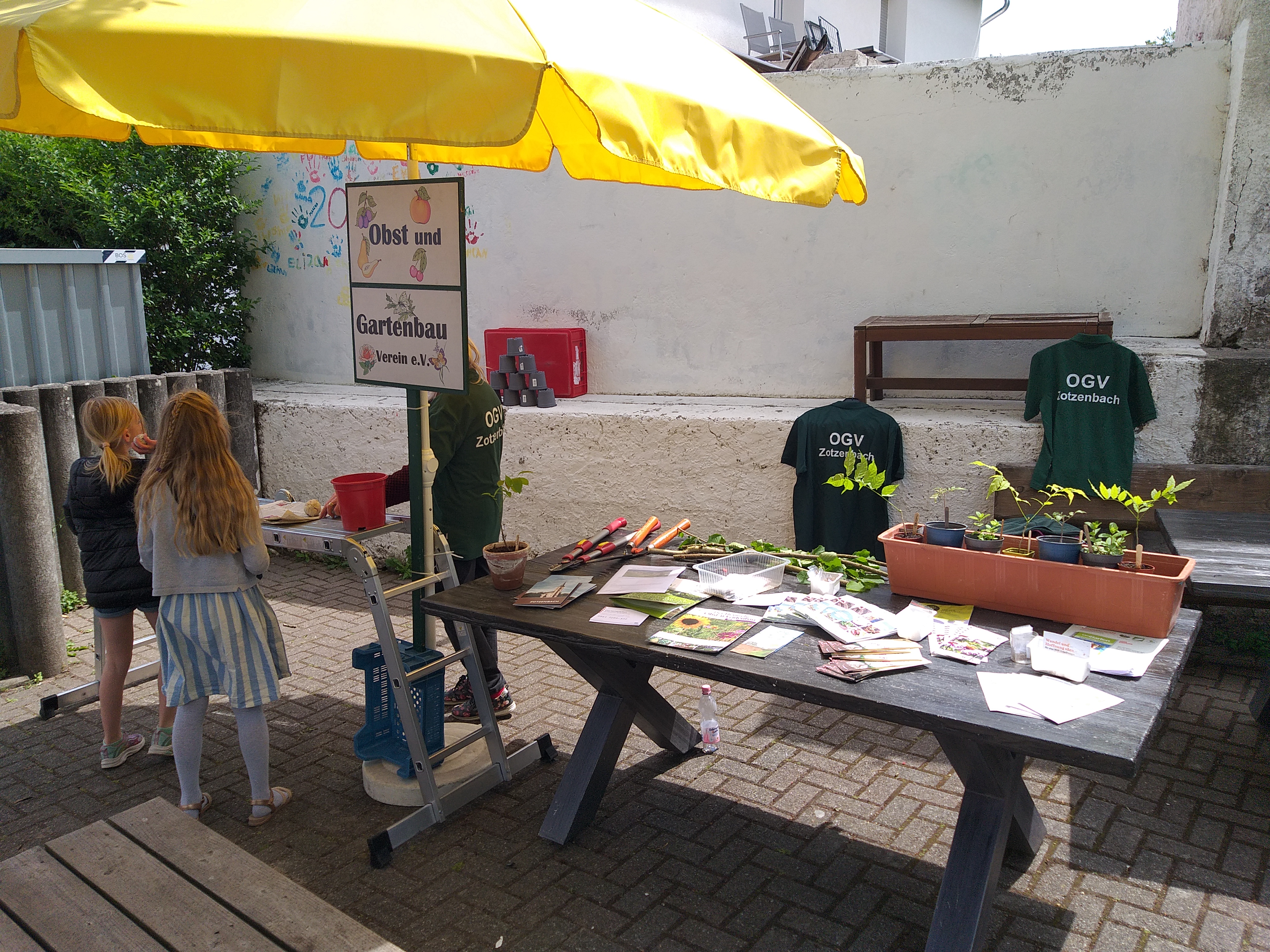 Der Obst- und Gartenbauverein Zotzenbach e.V. präsentierte sich auf Einladung der Rektorin, Annika Breunig, der Waldhufenschule Zotzenbach auf dem Schulfest. Mit den Anderen Vereinen bildete sich eine bunte Mischung von Angeboten, die bei Jung und Alt gut ankamen. Der OGV bot für die Kinder ein etwas anderes „Dosenwerfen“ an und zwar mit Blumentöpfen und Papierbällen. Für die Eltern gab es reichlich Infomaterial zur Gartengestaltung und Pflanzenpflege. Das Wetter spielte auch mit und so war es ein rundum gelungener Tag.