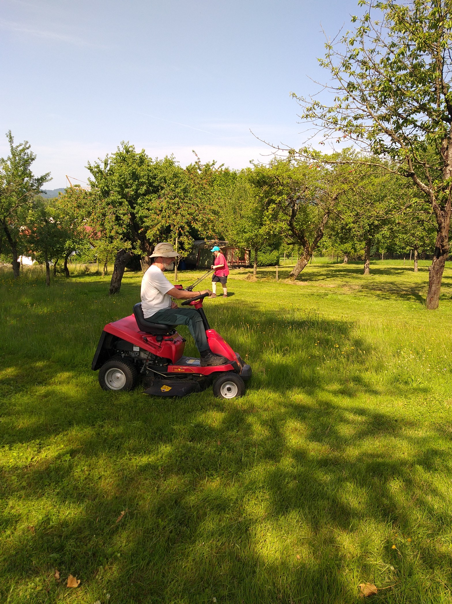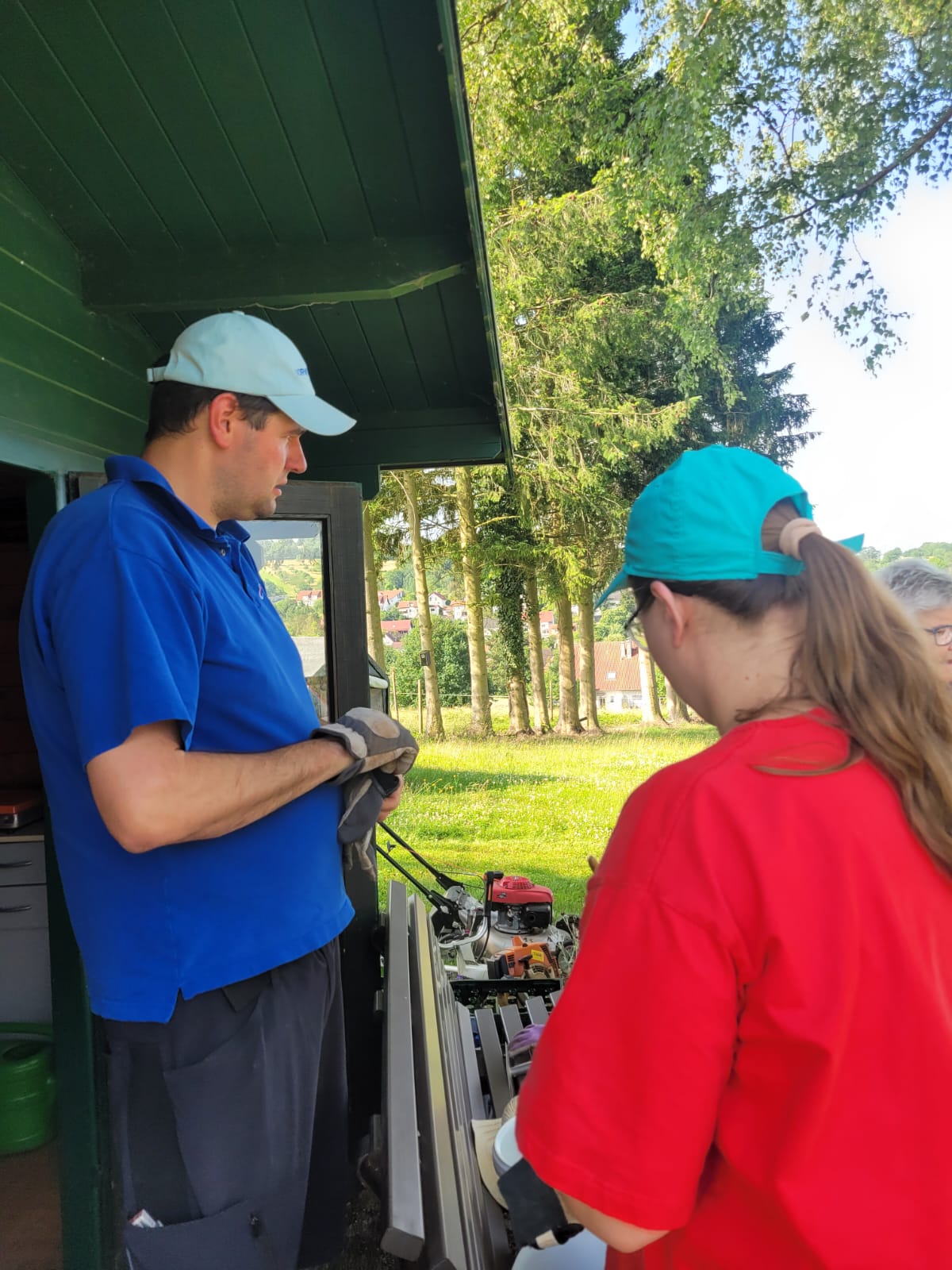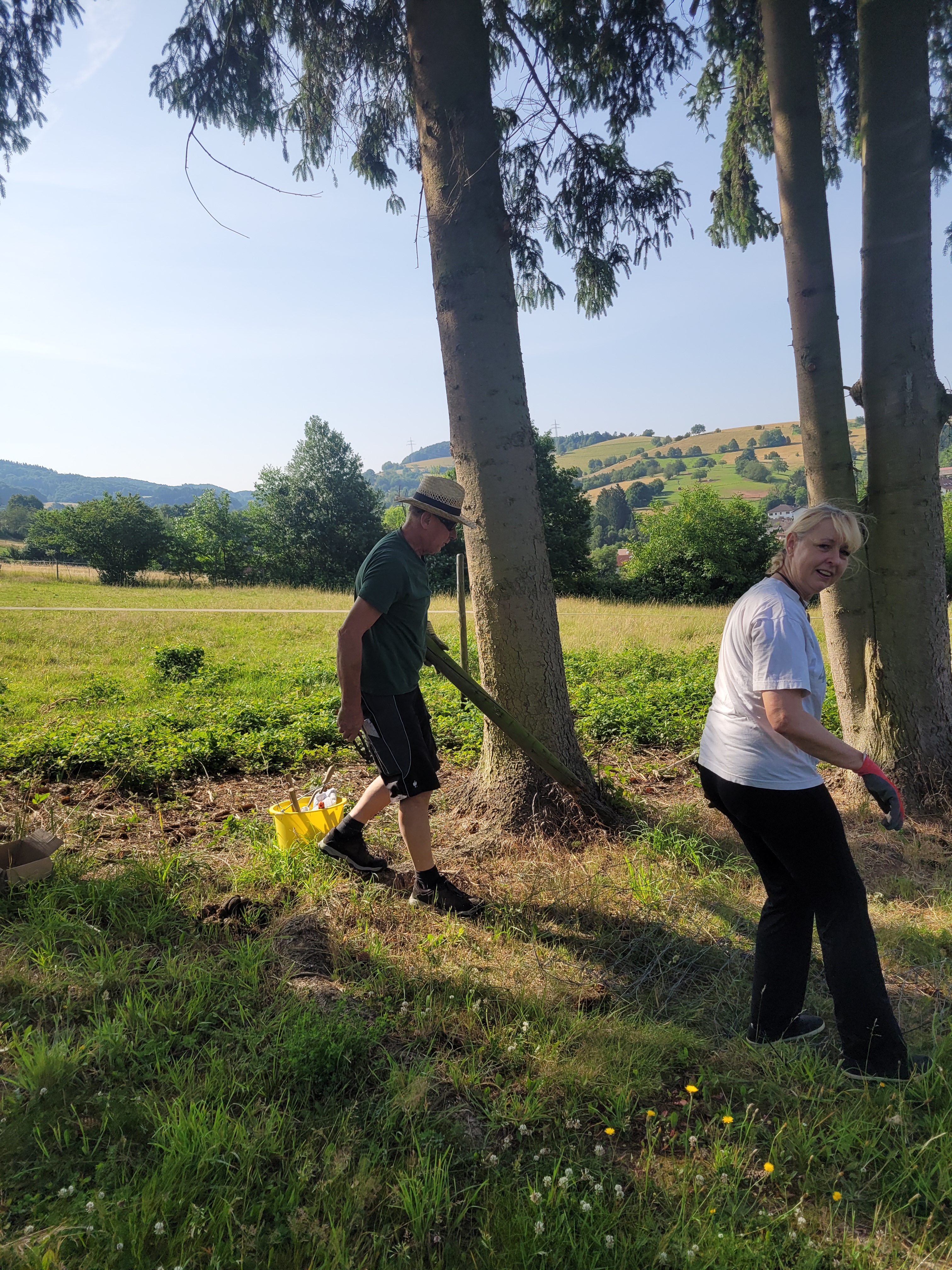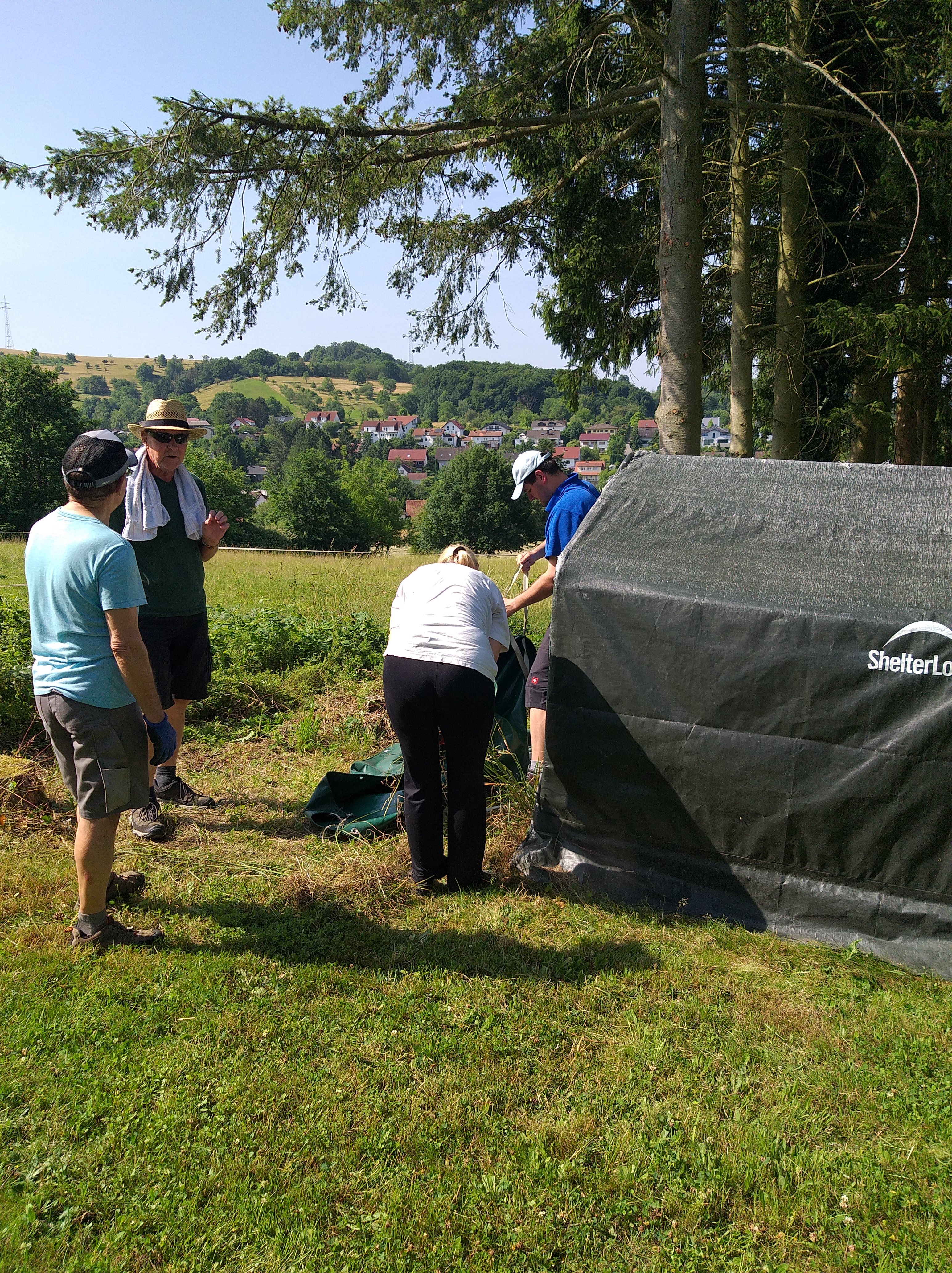 Den wärmsten Tag im Juni nahmen wir unbewusst zum Anlass wiedereinmal Ordnung auf unserem Vereinsgelände zu schaffen. 12 Vereinsmitglieder haben die morgentliche Kühle genutzt und den alten Zaun entfert, Gartenhütte und Vorplatz neu gestaltet und die abgeblühte Wiese gemäht. Da allen die Arbeit gut von der Hand lief konnten wir uns schon um 11:oo anstatt der geplanten 12:oo Uhr zum gemütlichen Teil begeben. Inge und Roland Klein haben aus gegebenem Anlass für das leibliche Wohl gesorgt und die Truppe mit Rinds- und Fleischwürstchen, Käsebrötchen und kühlen Getränken versorgt. – Den Beiden sei herzlich gedankt. – Beim nächsten Einsatz soll nun der neue Zaun installiert werden. – Bleibt zu hoffen, dass sich wieder so viele Helfer einfinden, nach dem Motto: „Viele Hände schaffen bald ein Ende“.